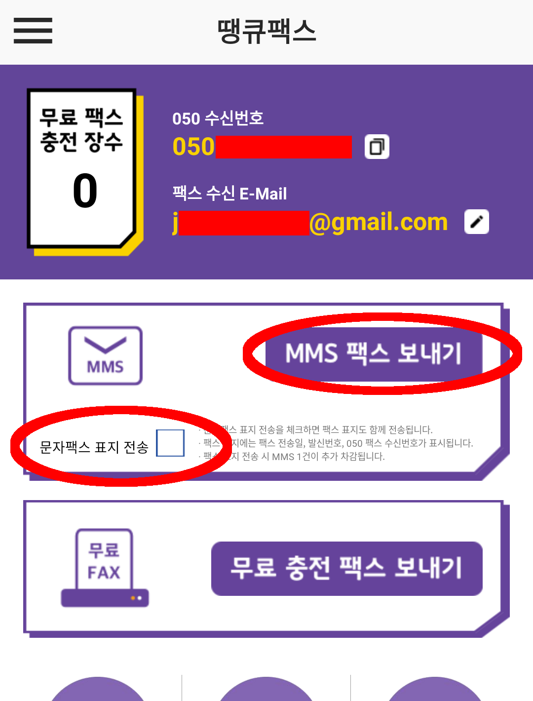 팩스를 보내야 할 경우 2가지 방식이 있습니다. 무료충전소를 이용하는 방법과 나의 MMS문자를 사용[차감]해서 보내는 것입니다.