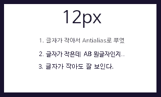 예전 화면의 해상도가 그리 좋지 않던 시절에는 글자를 화면에 찍으면 뿌였게 보였다. Antialias가 적용이 되면 뿌였게 되었고, 적용되지 않으면 못생긴 글자가 나와 둘 다 알아보기 힘든 상황이있다.