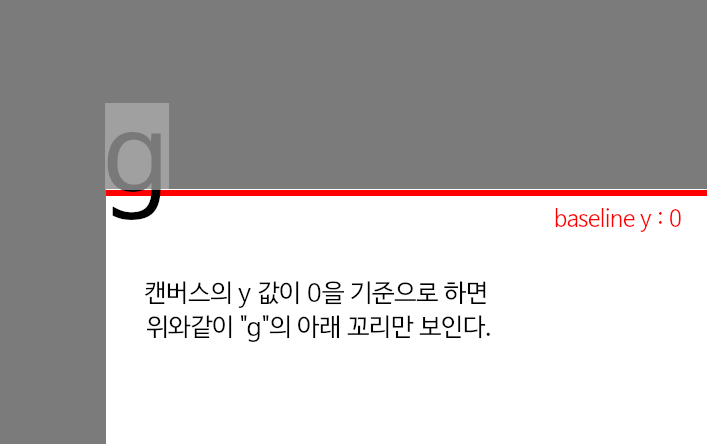 y값은 baseline을 의미한다. 글자는 baseline을 기준으로 그리기 때문이다. 다른 말로 상단으로 알고 출력을 해보면 다음과 같은 참사가 나타난다.
