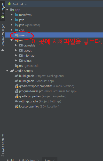 이제 만들어진 Asset폴더에 폰트파일을 넣는다.