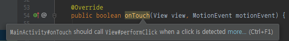 // onTouchEvent에서 view.performClick()이 실행되게 되기 때문에