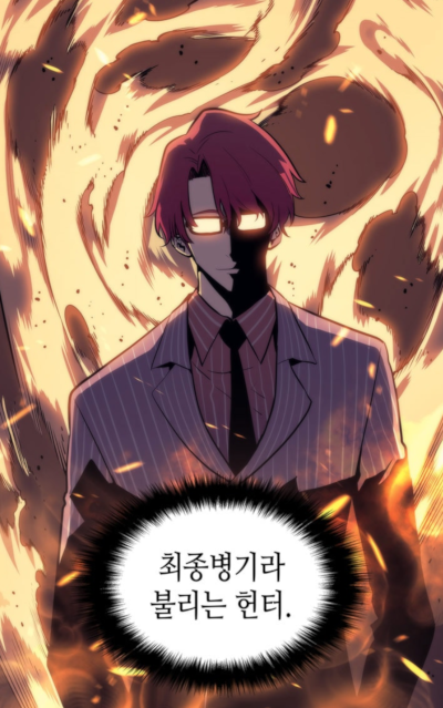 주인공, 헌터협회 소속, E급(그 중에서도 젤 약해서 "최약병기"라 함 ), 병원에 누워있는 어머니와 공부잘하는 여동생의 학비를 위해 어쩔 수 없이 헌터일을 함