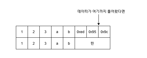 [ String s = new String(b, "UTF_8"); ] 를 사용하게 되면 변환이 제대로 일어나지 않는다. 이 맨 위의 방식은 데이터가 온전해야 하기 때문이다.