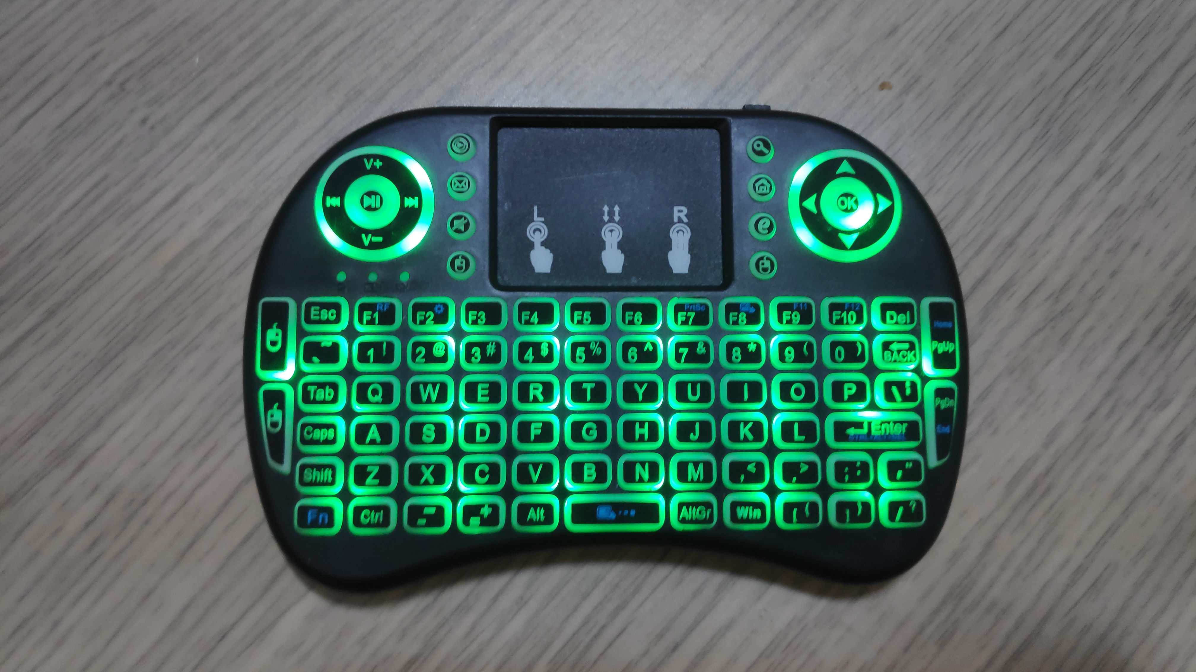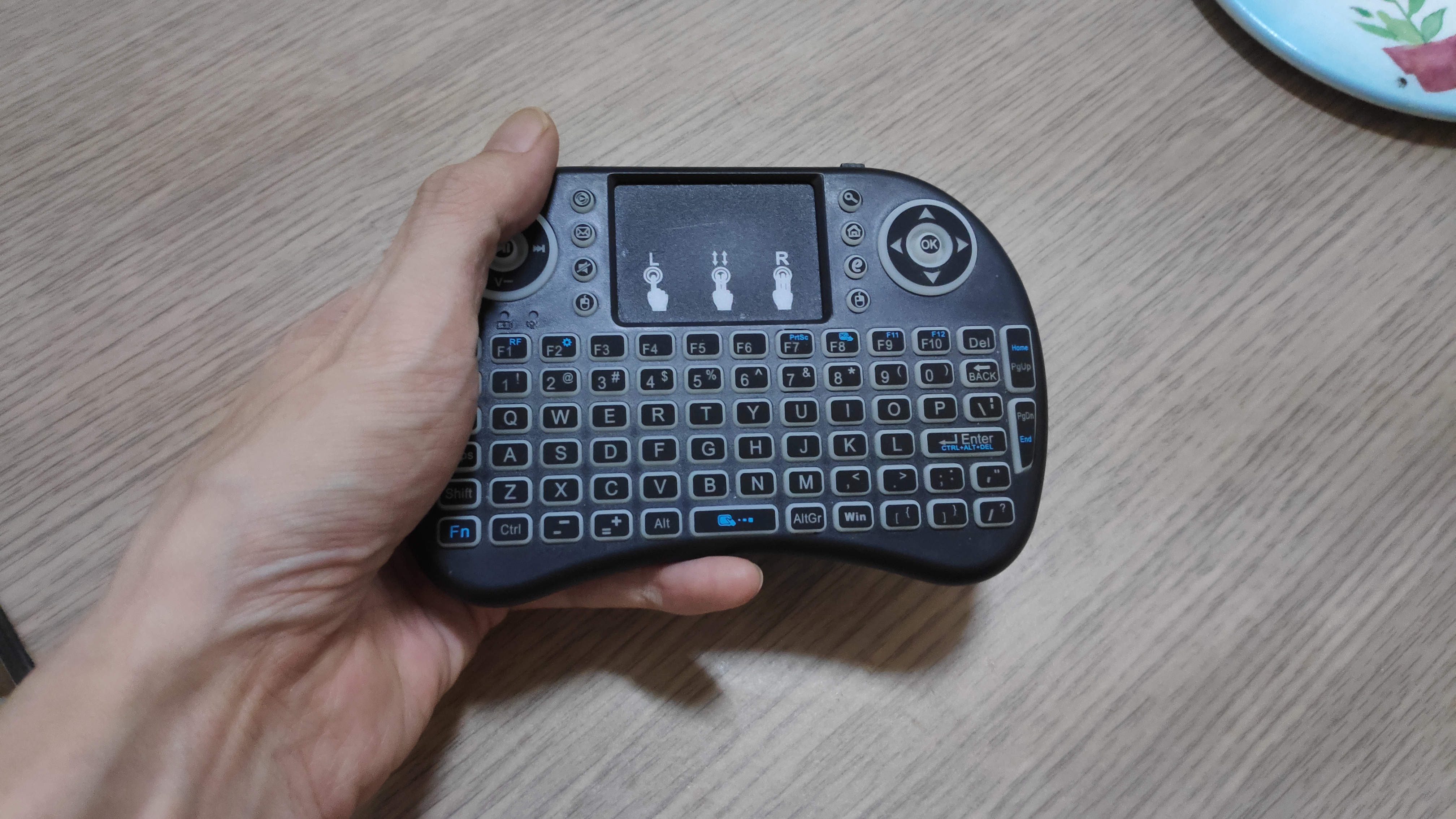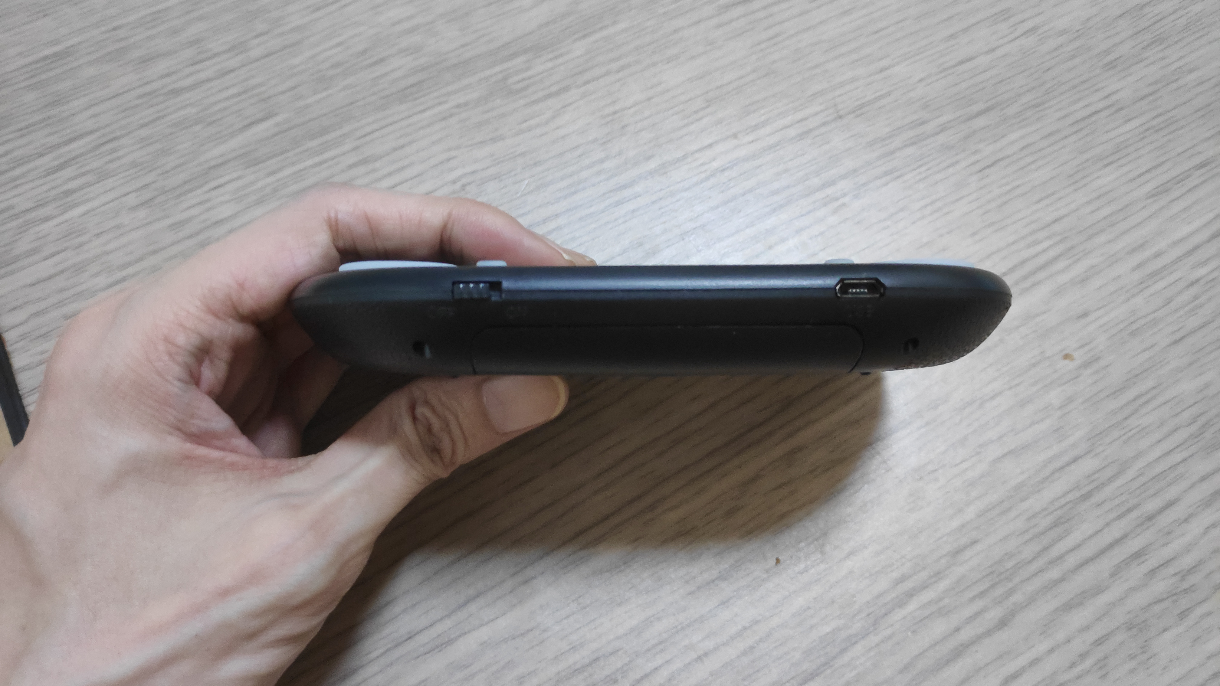 일단 크기에 놀랐다. 알리에서 보이는 크기는 노래방의 리모콘정도의 크기로 생각했지만, 실제는 그보다 훨씬 작았다. 거의 "이 거 장난감인가? 되기는 될까?"하는 생각을 하게 만들었다. 크기는 듀얼쇼크보다도 작다. 그래서 듀얼쇼크를 잡 듯 들고 파지해서 엄지 손가락으로 눌러야 하는 방식이다. 터치패드를 쓸 때는 한 손으로 잡고, 다른 손의 손가락으로 움직이는 구조다.