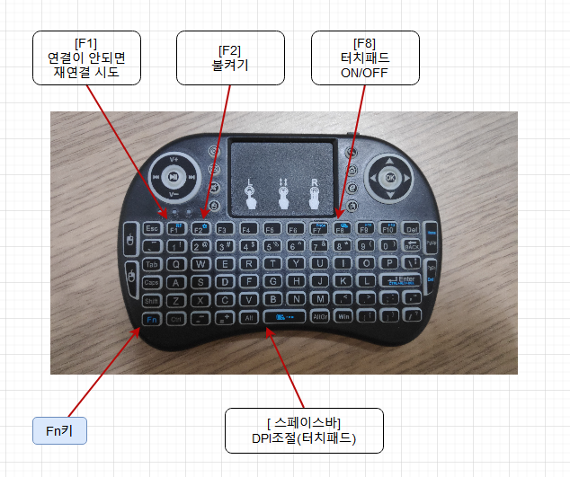 난 알리의 사진만 대충보고 싸길래 주문을 했는 데, 위에 네모칸이 있어서, "저건 뭔가?"하는 생각만 했을 뿐, 마우스를 대체하는 터치패드인 줄 받고서야 알았다. 물론 확실히 확인하지 못한 필자의 잘 못(?)이지만, 어쨌든, 마우스를 따로 달지 않아도 된다는 것에 살짝 미소가 지어졌다.