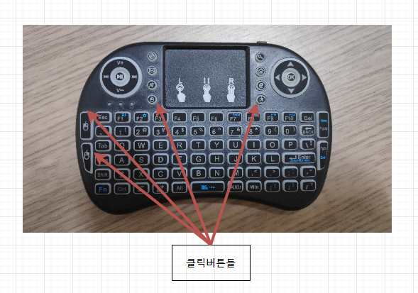 클릭을 굳이 터치를 이용할 필요는 없다. 좌측에 마우스 클릭 키가 있어서 오른손가락으로 터치하고 왼손 엄지로 클릭을 할 수도 있다.