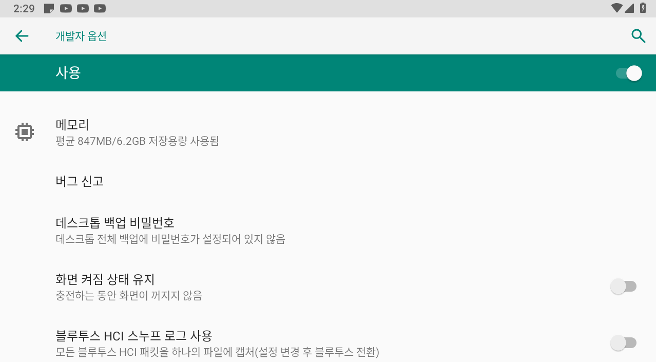[사용]을 끄고 메뉴를 나가면 된다. 그러면 이 [개발자 옵션]이 다시 사라지고, 켜려면, 다시 위에서 연타를 쳤던 작업부터 다시 하면 된다.