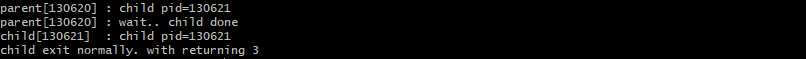 위의 예제에서 자식프로세스에서 exit(3)한 "3"의 값을 받아오는 것을 확인 할 수 있다.