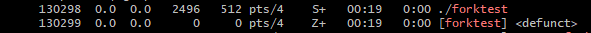 좀비 프로세스를 보면 VSS, RSS등 모든 메모리는 정리가 되었지만, 종료값처리 등을 위한 최소한의 정보만을 유지해야 하고 있기 때문에, 완전히 종료되지 못하고 있다.
