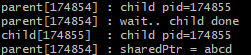 printf( "parent[%d] : sharedPtr = %s\n", (int)getpid(), (char*)sharedPtr );