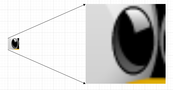 계산된 위치의 픽셀[1]과, 바로 오른쪽[2]/ 바로 아래[3] / 바로 오른쪽-아래픽셀[4], 총 4개의 픽셀에 거리에 따른 가중치를 적용해서 새로운 픽셀값을 계산해 낸다. 바로 옆에 붙어 있는 픽셀로만 계산하도록 되어 있다.( 비율과 상관없이 멀리 떨어진 픽셀은 신경도 안쓴다.)